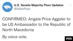 Анџела Прајс Агелер е потврдена за нова амбасадорка на САД во Северна Македонија, објави на Твитер демократското мнозинство во Сенатот.