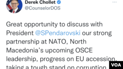 Советникот на Стејт департментот Дерек Шоле рече дека разговарал со претседателот Стево Пендаровски и премиерот Димитар Ковачевски за заземање цврст став за корупцијата.